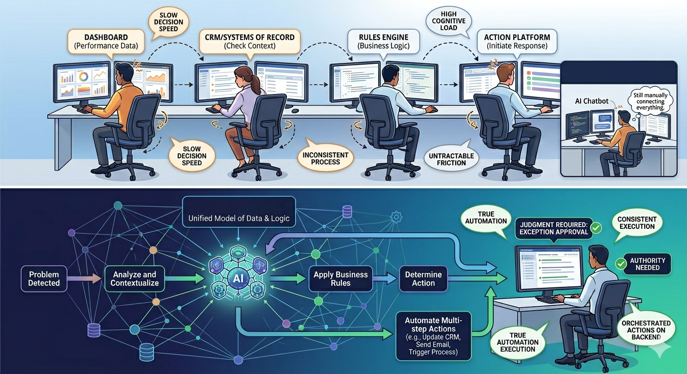 This is the difference between an AI that generates answers and an AI that runs operations.